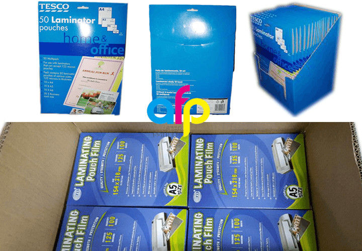 চকচকে পলিয়েস্টার পিইটি ব্যাগ ল্যামিনেটিং ফিল্মটি 125 মাইক্রন ((স্থলতা) এবং A4 ((216 মিমি * 303 মিমি) আকারের সবচেয়ে জনপ্রিয়, যা ব্যাপকভাবে নথি এবং ফটো সুরক্ষার জন্য ব্যবহৃত হয়।